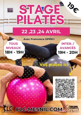 Francesca propose de continuer de pratiquer pendant les vacances. RDV les 22, 23 & 24 avril 2026, de 18h à 19h « tous niveaux » / de 19h à 20h « intermédiaires/avancés » , ... - 24Stage de PILATES vacances de printemps0h00 - 20h00