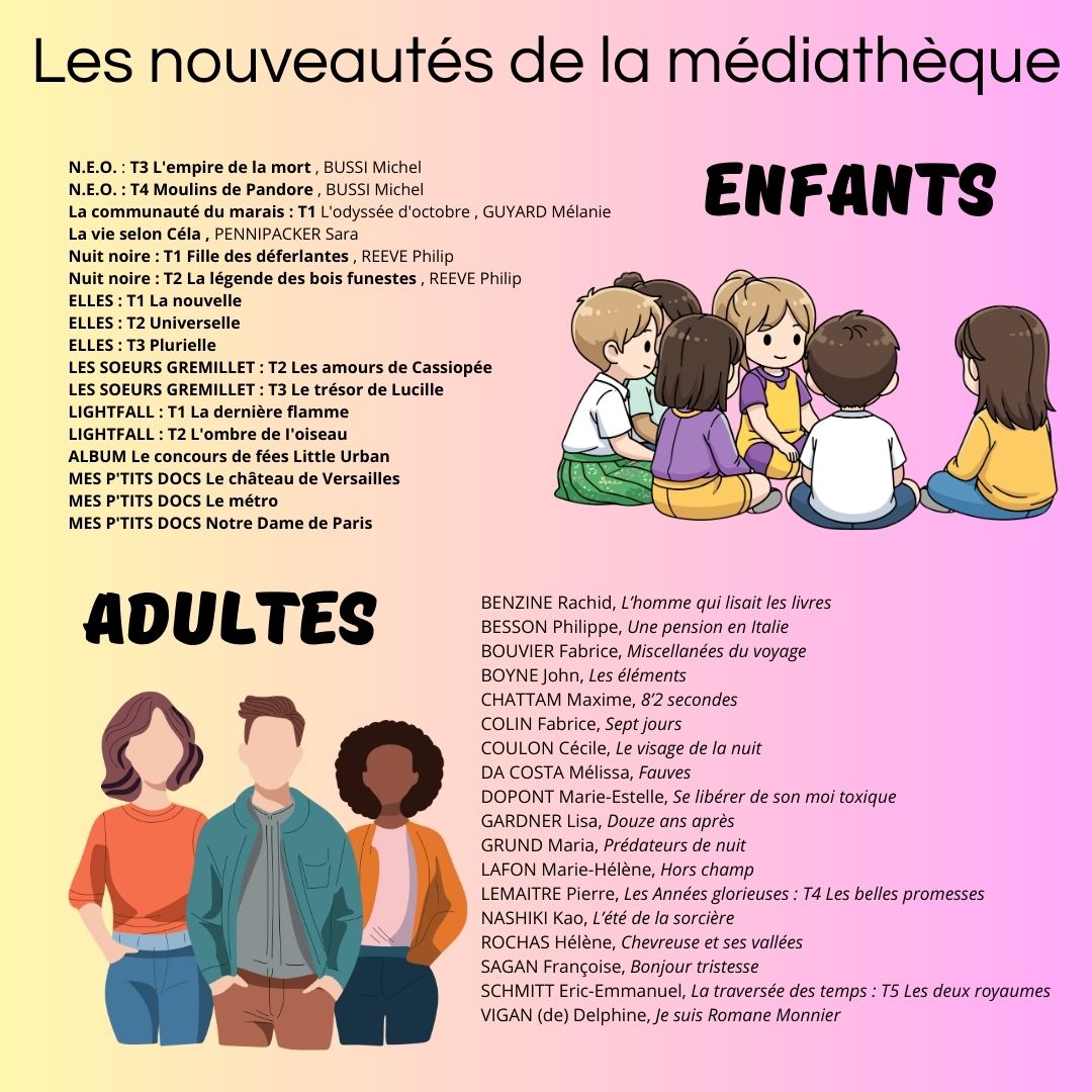 De nombreux romans, revues, bandes dessinées, magazines ou encore DVD pour tous âges vous y attendent! Grâce à son équipe active de bénévoles, elle propose aussi des expositions et évènements.